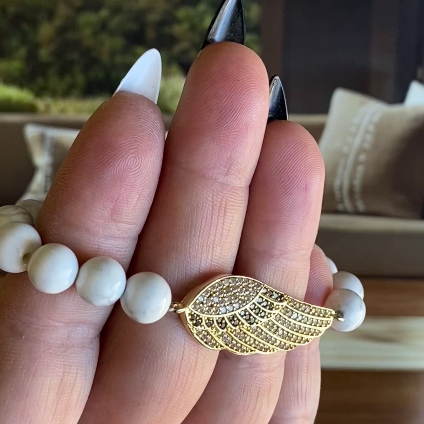 This striking stacking bracelet, designed to elevate any look, features a gold angel wing detailed with micro-pavé diamondettes, set in gold over sterling silver.