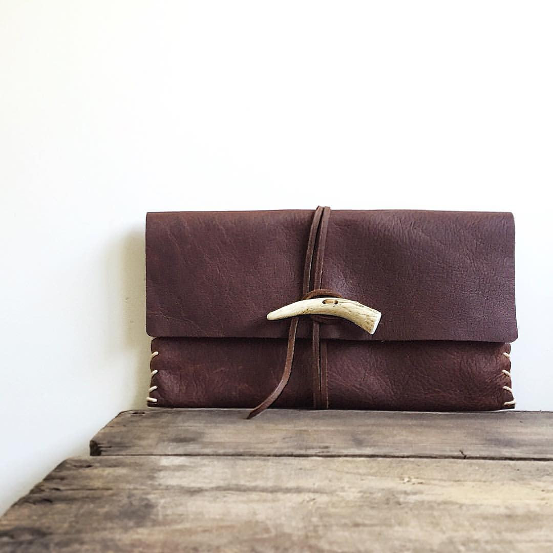 The absolutely beautiful antler shed for the closure and contrast stitching are the details that make this simple little handheld bag extra special, and a true statement piece!
