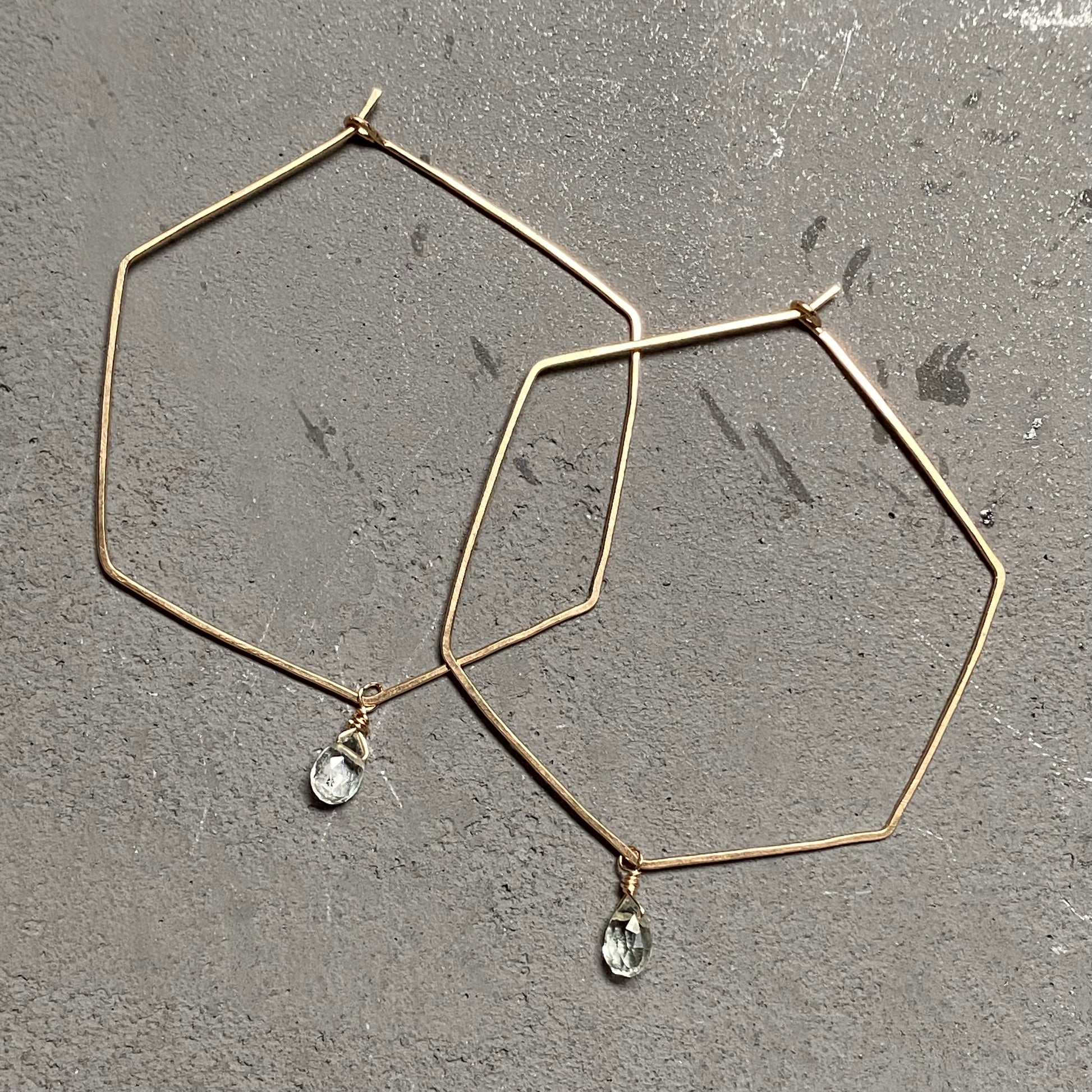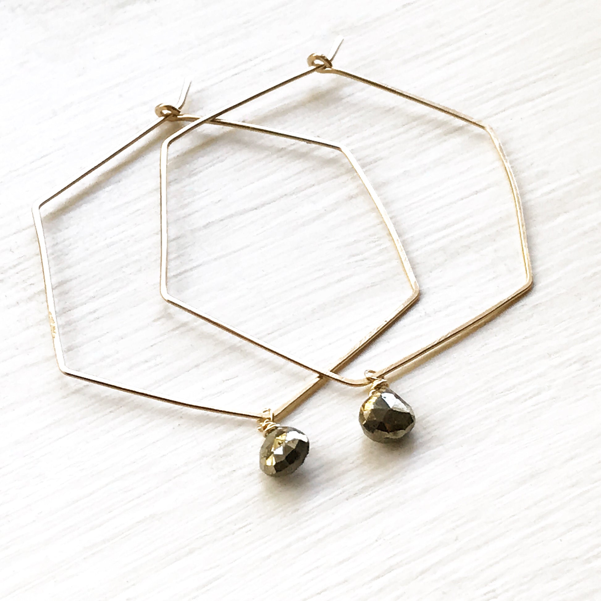 Hammered gold hexagon hoops. So lightweight you forget you’re wearing them—until someone compliments how lovely they look on you.
