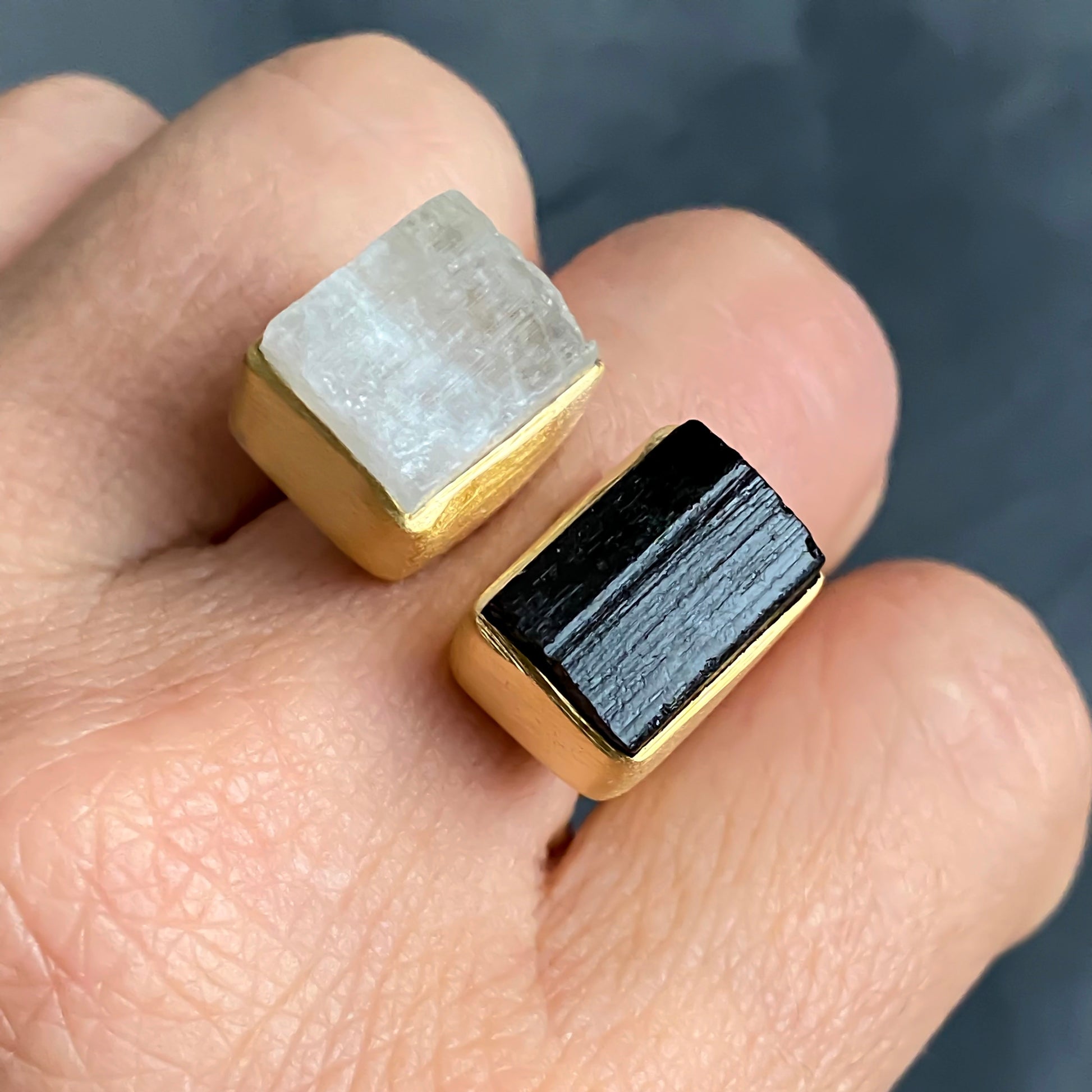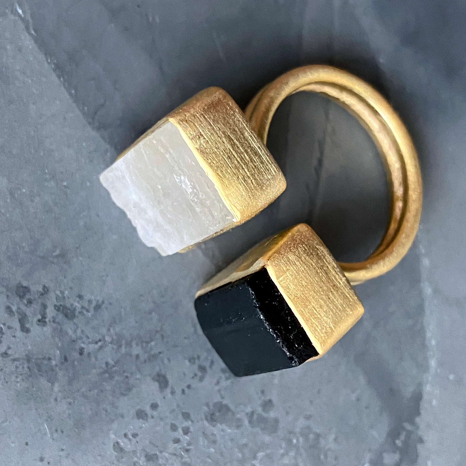 Our double stone rings are adjustable. Send us a note during checkout with your desired ring size so we can set the ring especially for you. If you’re unsure of your size, you can easily adjust the fit once you try it on.