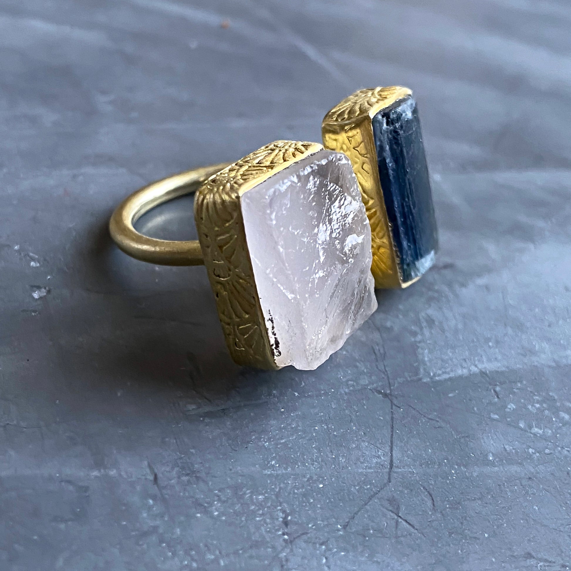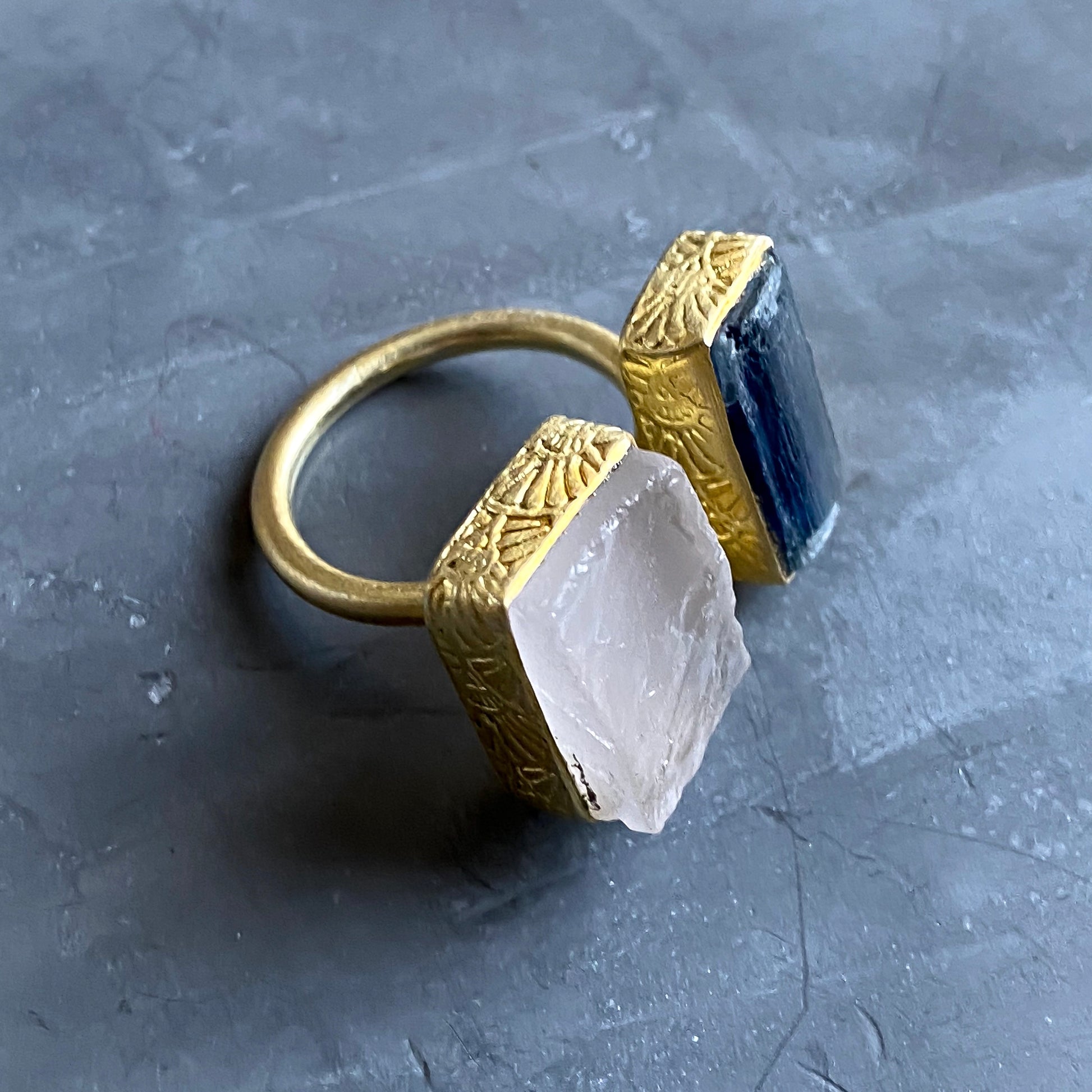 Our double stone rings are adjustable. Send us a note during checkout with your desired ring size so we can set the ring especially for you. If you’re unsure of your size, you can easily adjust the fit once you try it on.