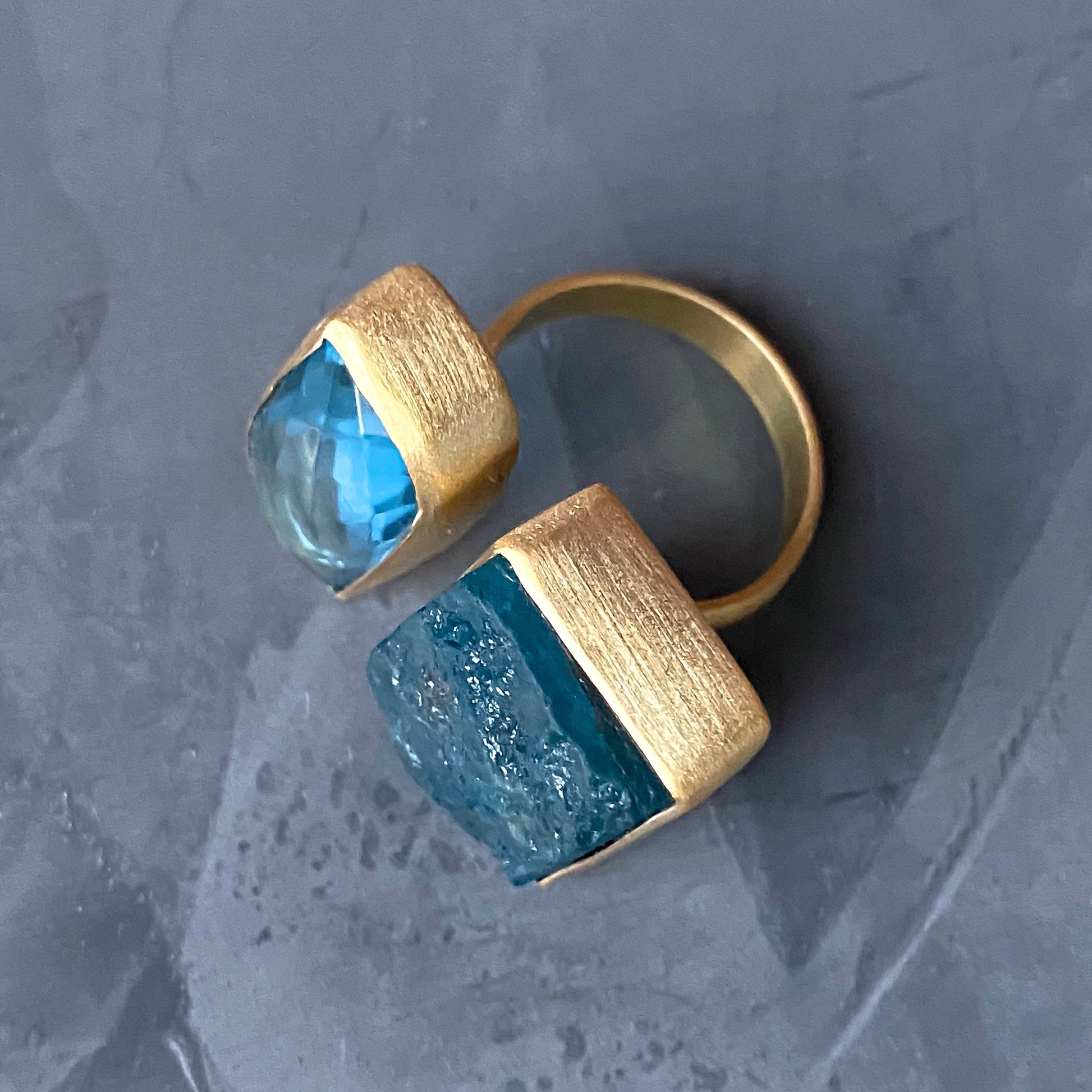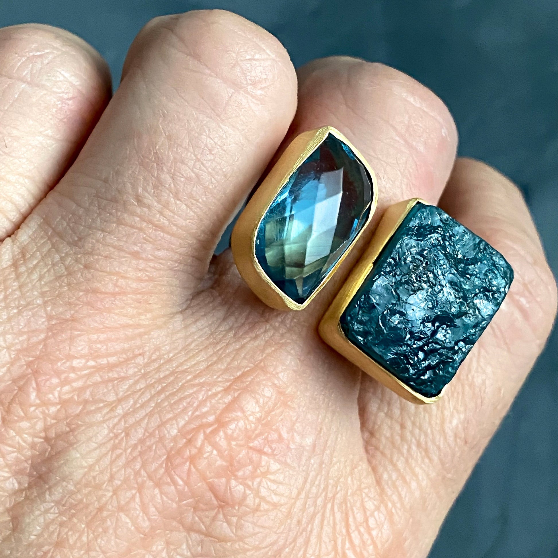 Our double stone rings are adjustable. Send us a note during checkout with your desired ring size so we can set the ring especially for you. If you’re unsure of your size, you can easily adjust the fit once you try it on.