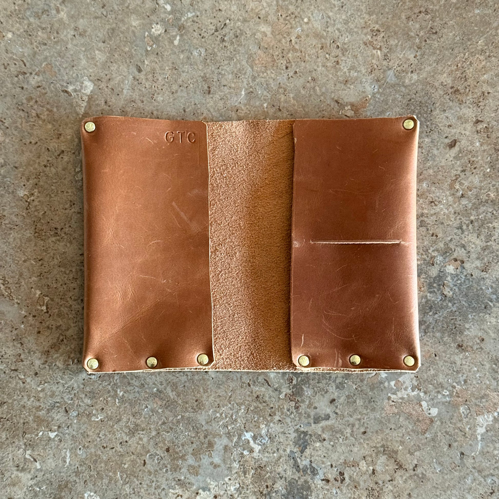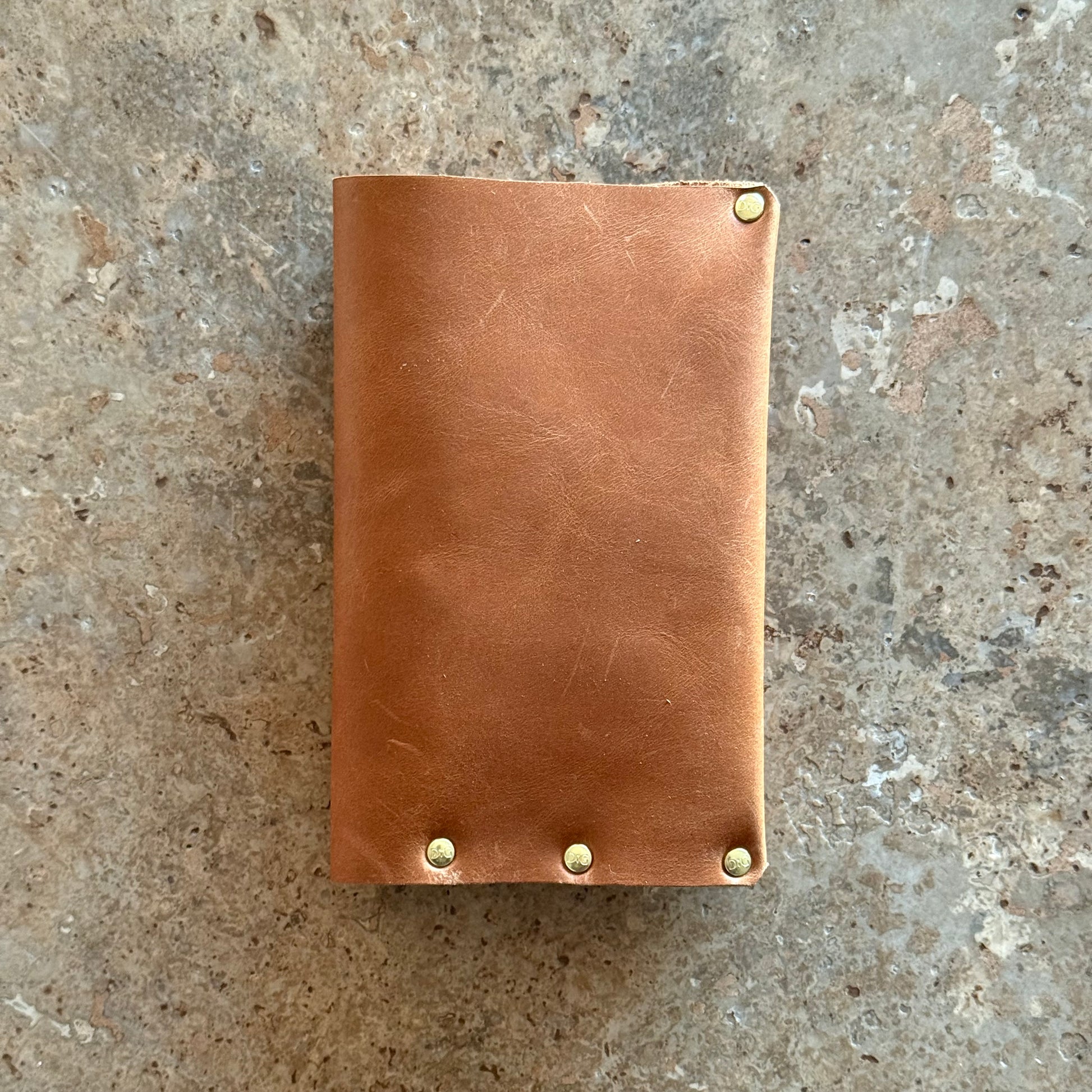 This beautiful + classic style passport case is handmade with top quality oil-tanned leather + solid brass DiG branded hardware. The stunning cognac leather is hand cut + can be personalized with initials.