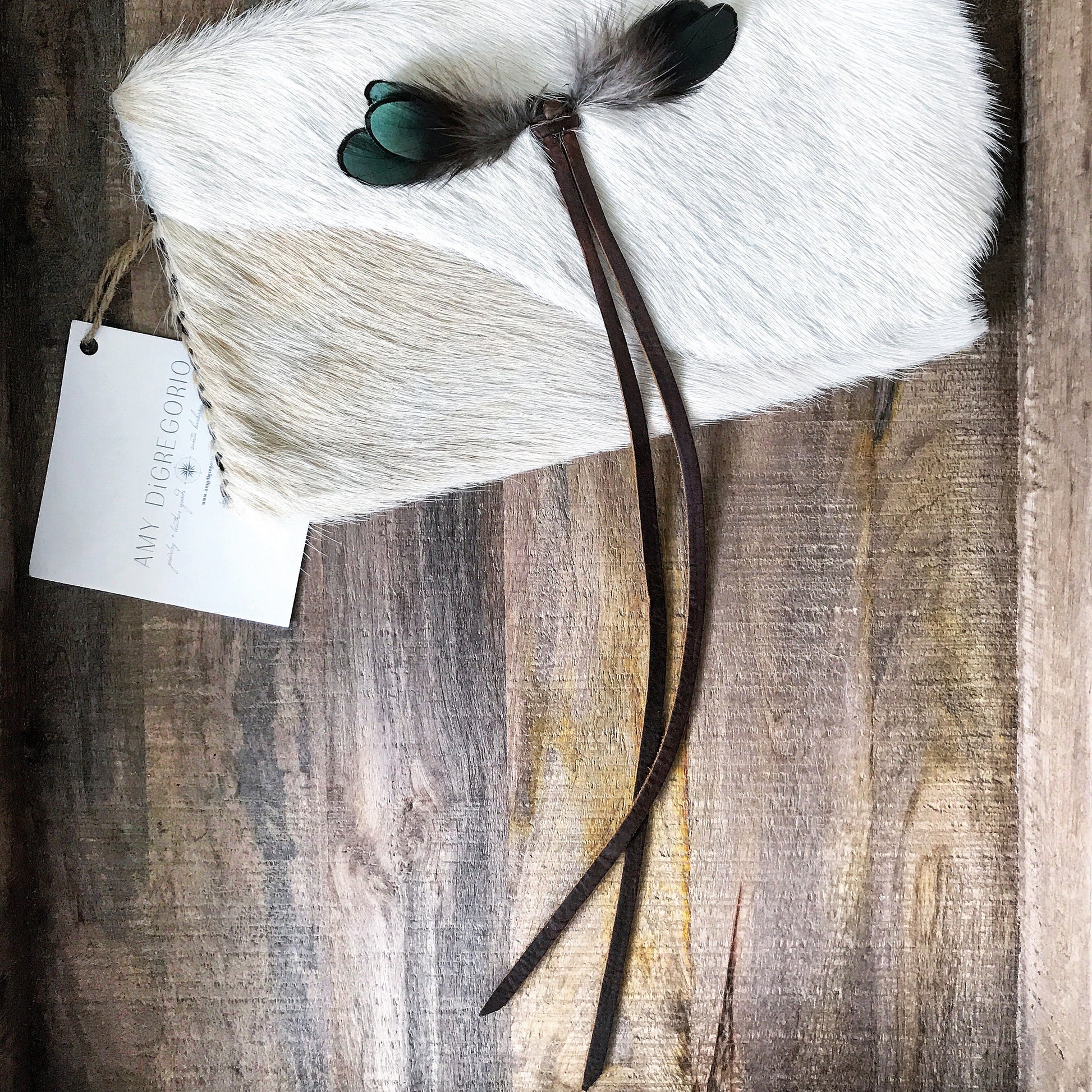 The contrast stitching and beautiful feather + leather tassel are the details that make this handheld bag extra special. Whether you're headed to a casual brunch or a fancy event, this unique bag will make just the right statement.