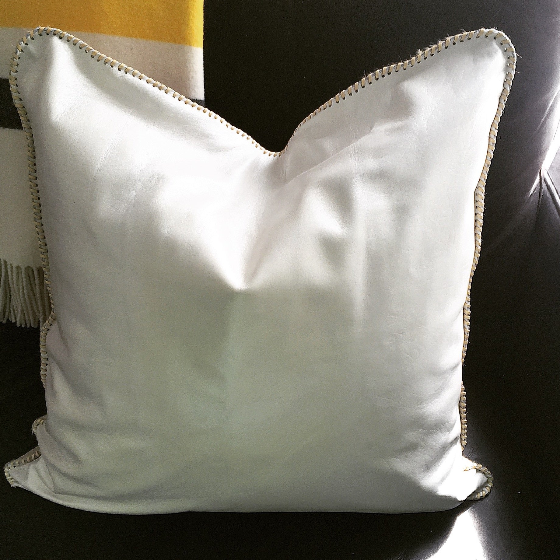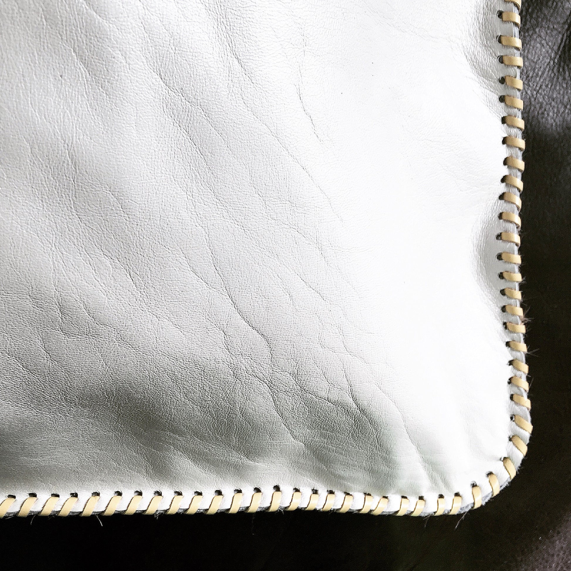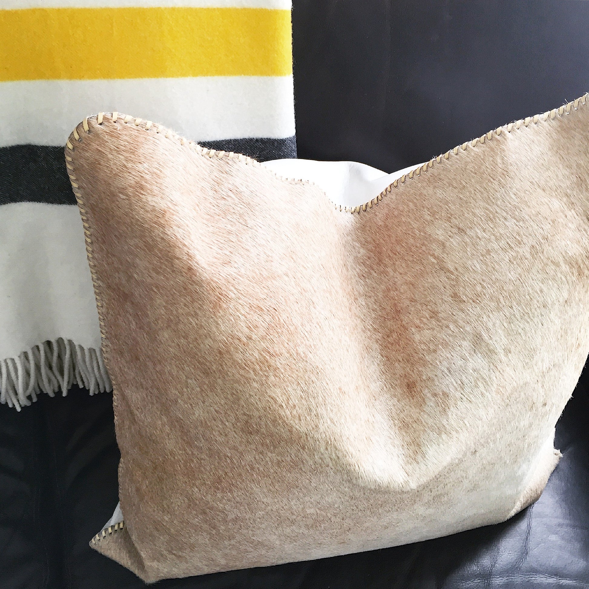 These large, hand-stitched leather pillows are filled with down feathers, and can be displayed on either side... Rich, beautiful cowhide on one side, incredibly soft lambskin on the other.