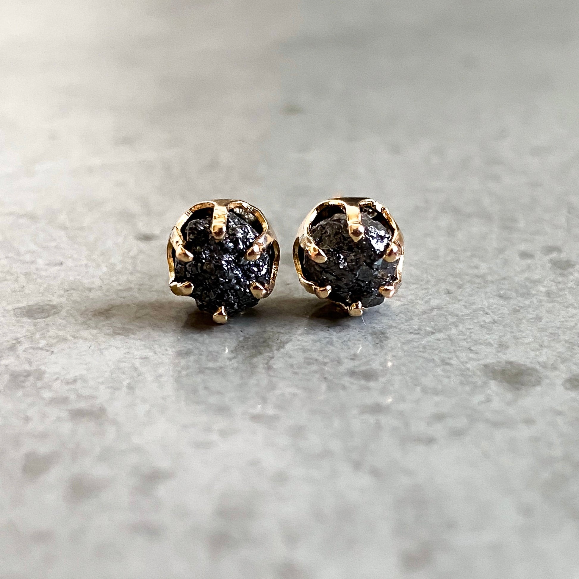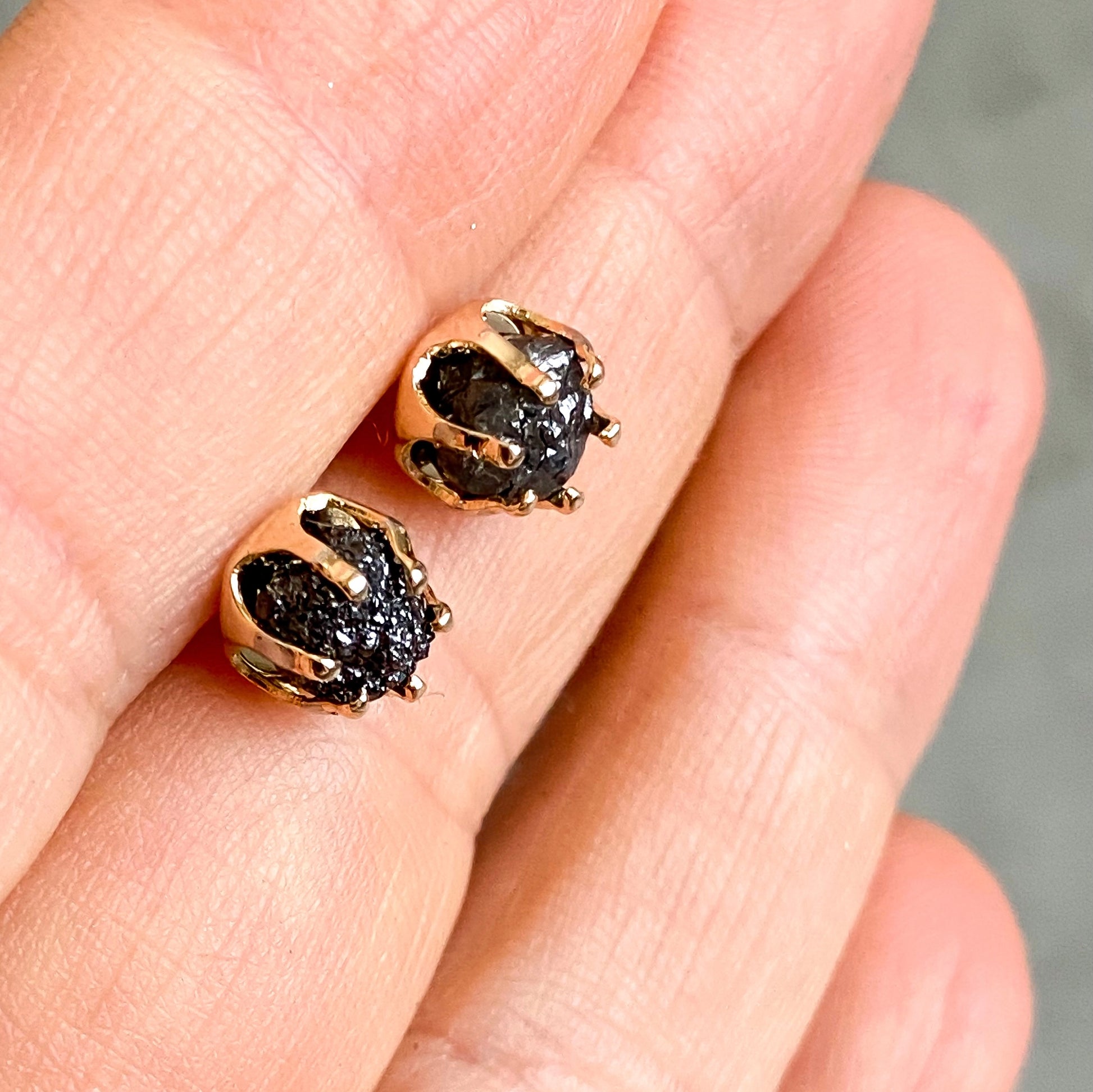 Meet our stunning, rare, rough black diamond earrings! We suggest wearing these gorgeous studs everywhere. Handcrafted with 24-karat gold plated posts, we love how this uncut, organic shaped pair elevates any look.