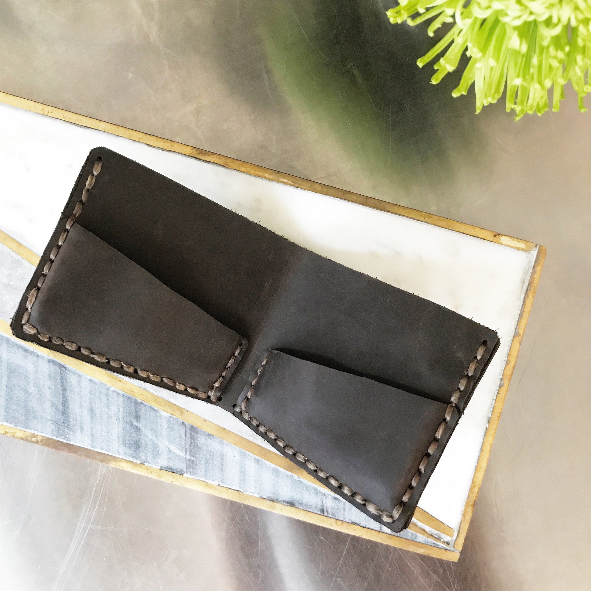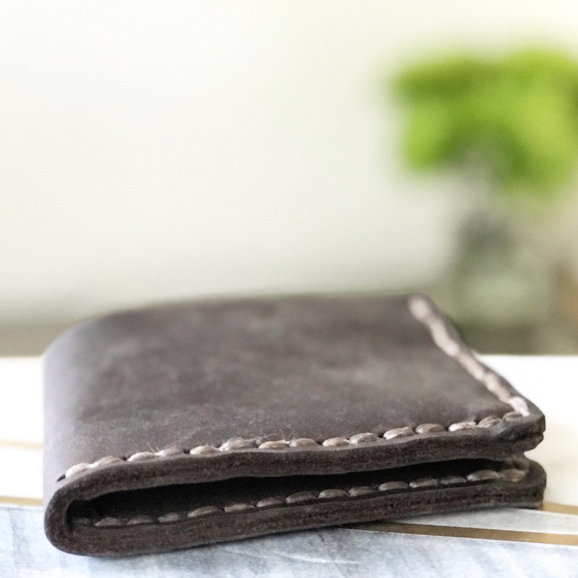 Our leather wallets are designed entirely by hand with gorgeous waxed + oiled distressed leather. Over time, it will gather wrinkles + markings, adding undeniable character to your special handmade piece.