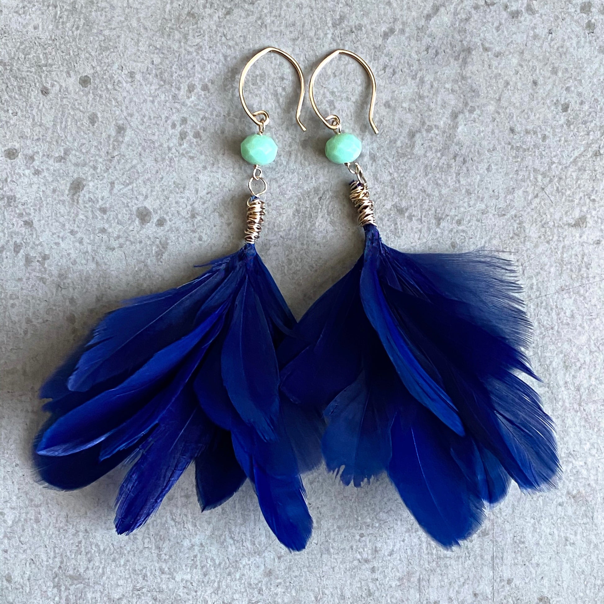 Gorgeous feathers wrapped in gold, swing below top-quality, sparkling Czech glass beads!