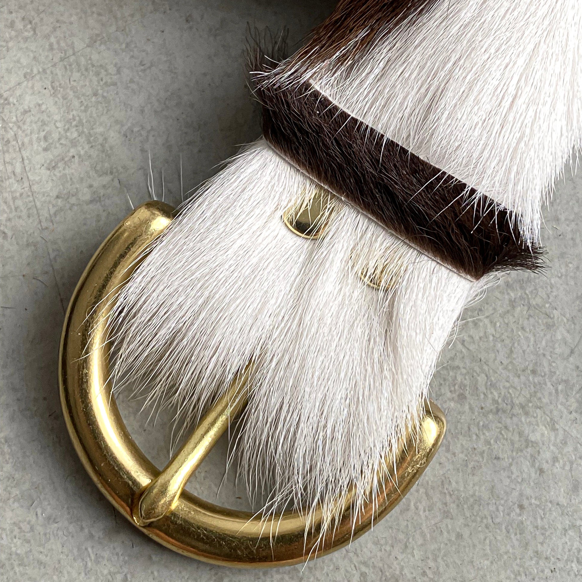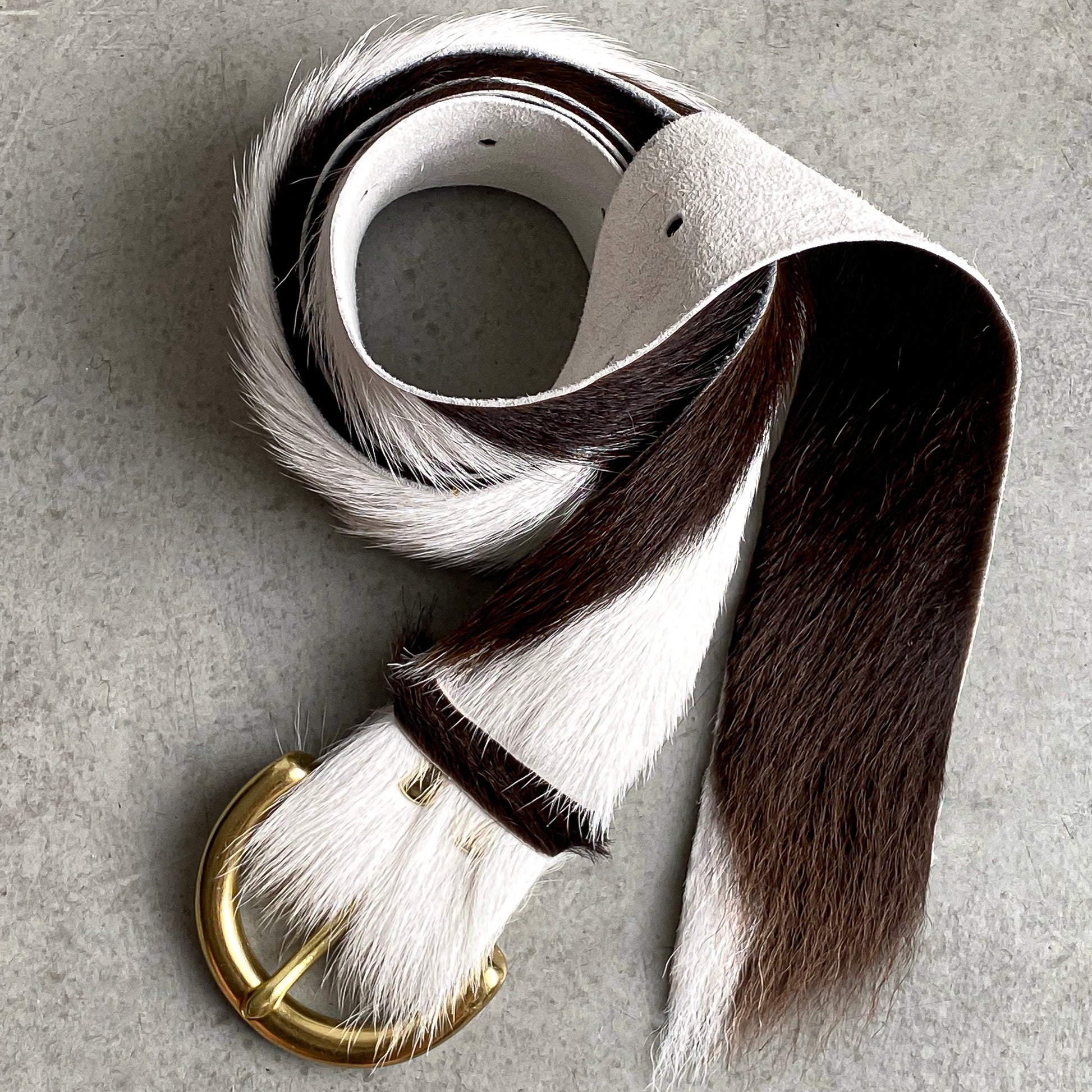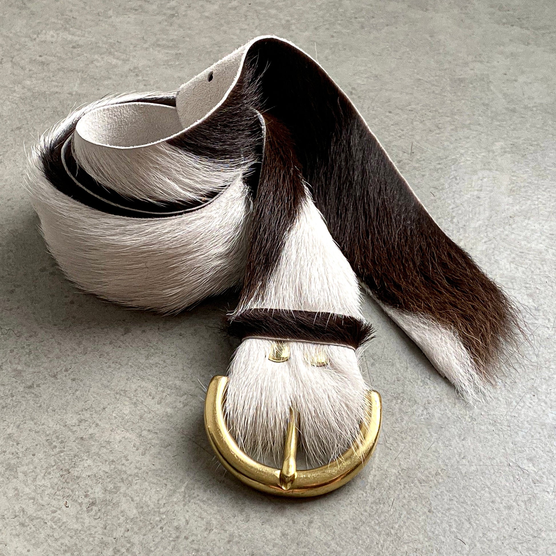 We absolutely love the balance of something soft and feminine matched with something solid and shiny. The hair on hide leather is absolutely stunning with contrasting colors, and the buckle is weighty of polished solid brass.