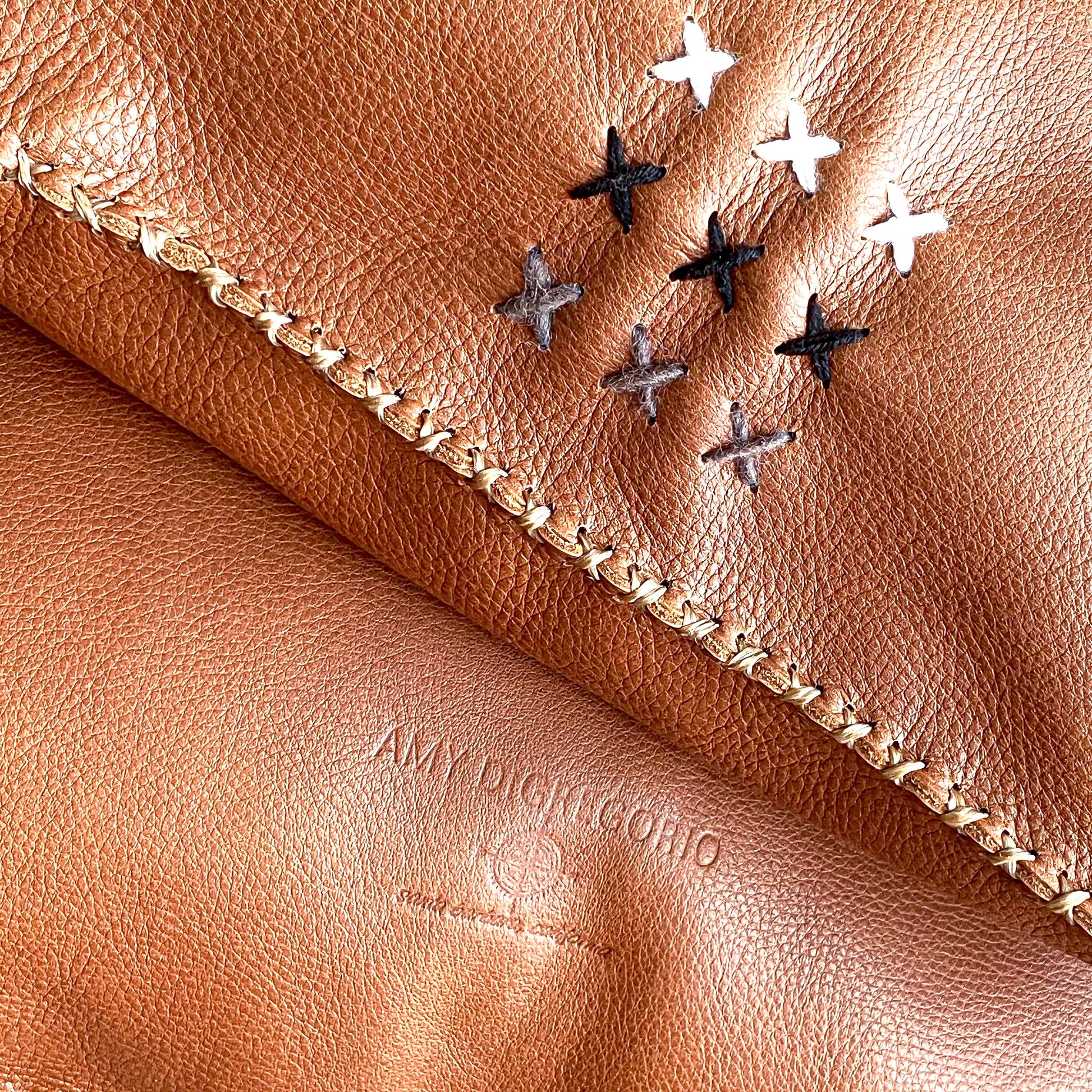 Handstitched Whiskey Leather Pillow