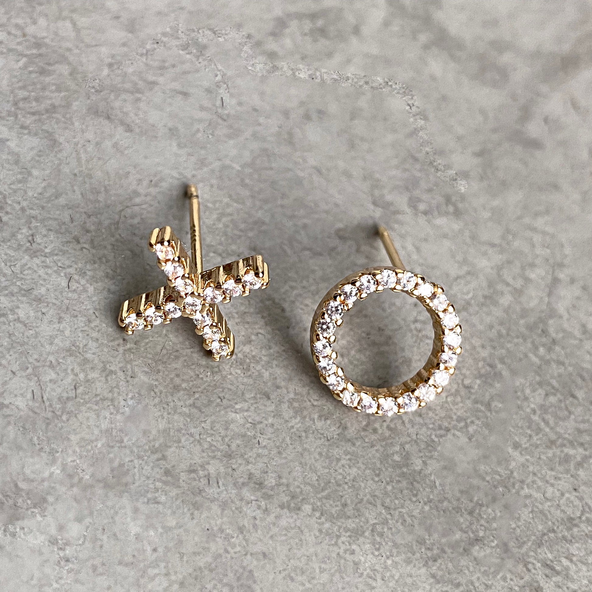 Handcrafted in 24k yellow gold thick plating over sterling, this sweet pair transitions from day to night with ease. Wear an X and an O on each ear, or take your style cue from Amy and layer them together on one ear!