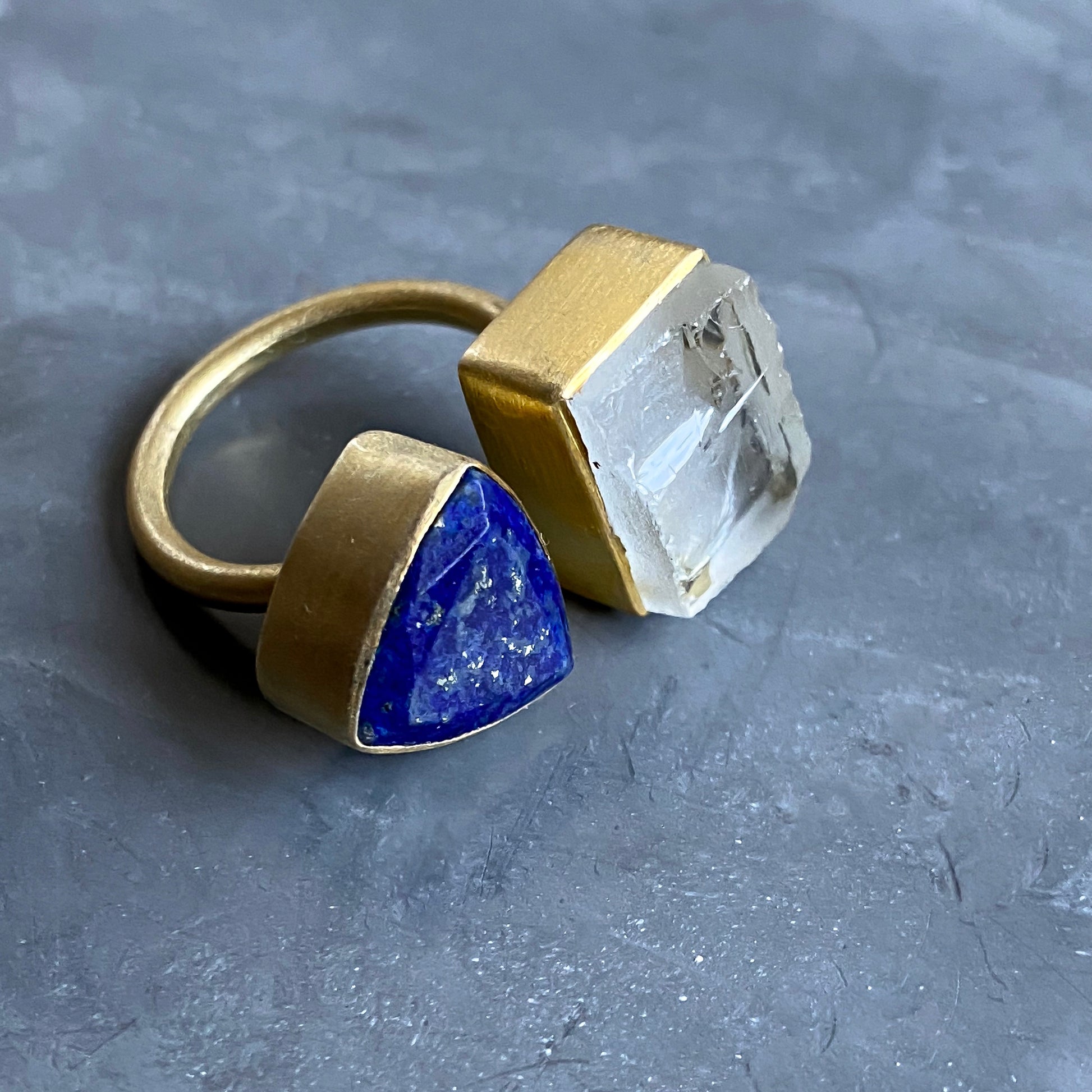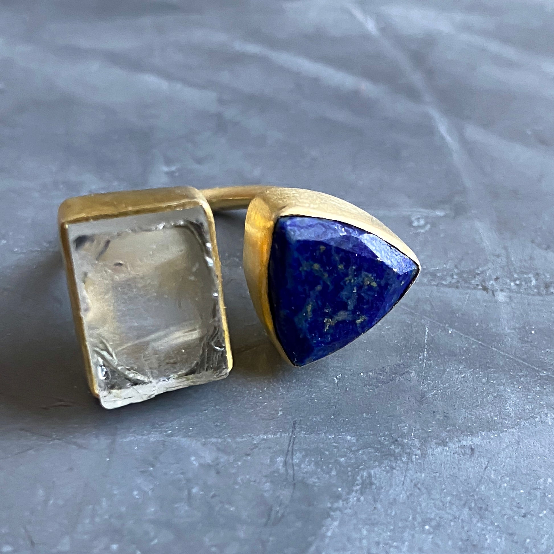 Rough cut raw clear quartz is a powerful healing stone, encouraging healthy mind, memory, and emotions. Lapis Lazuli is connected to the Third Eye and Throat Chakras, known as the wisdom stone. This crystal raises the vibration of your soul, encouraging you to speak your truth.