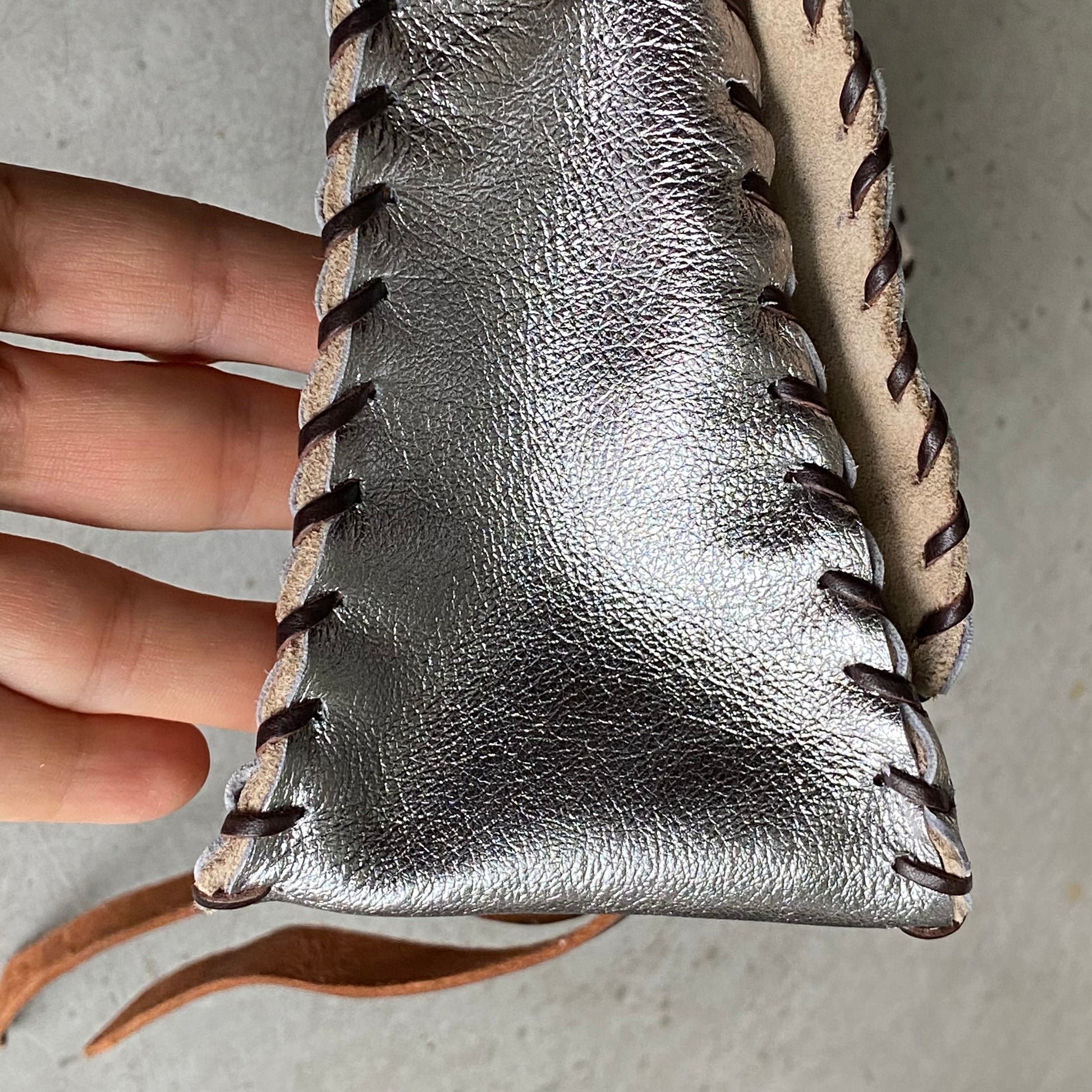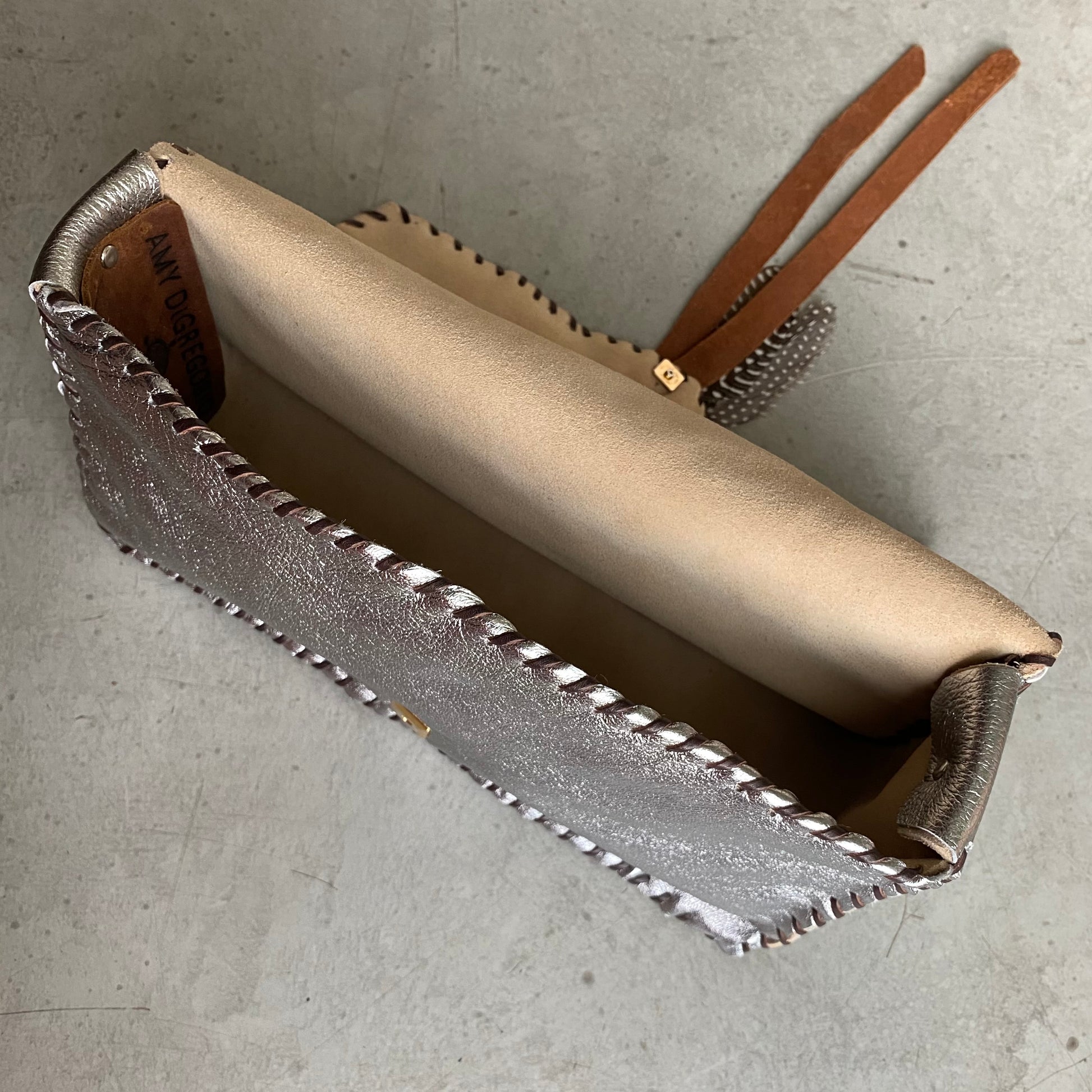 Incredibly soft Italian lambskin with a beautiful shimmery hue in silver or gold! The interior is just as rich as the exterior — lined in thick + luxurious suede to add some structure.