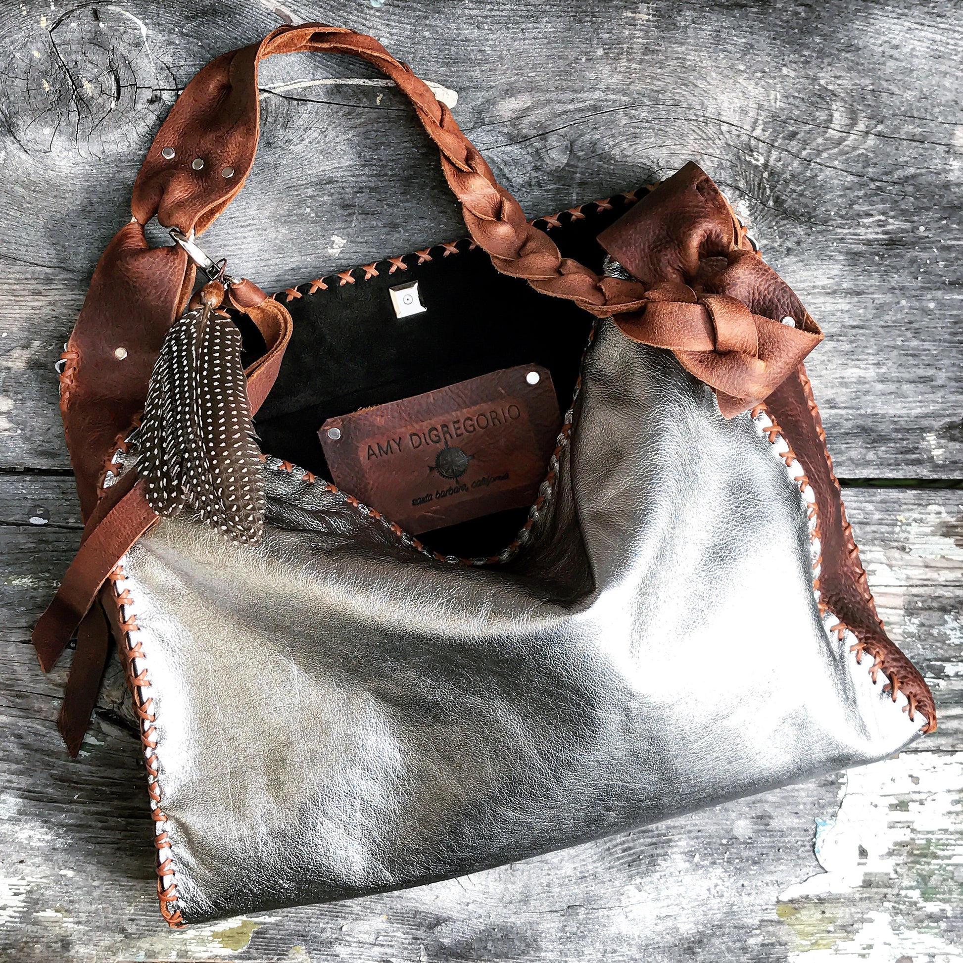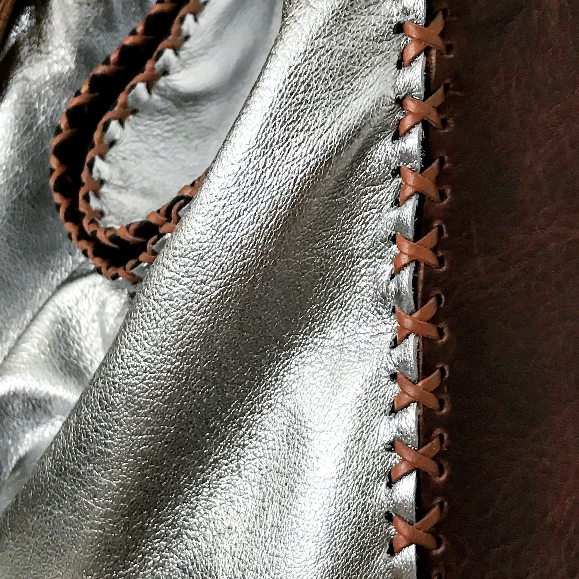 Each bag is designed entirely by hand with the highest quality + softest lambskin on the market. Rich oiled saddle leather was chosen for durability and beautiful contrast for the sides + our signature hand-braided strap.