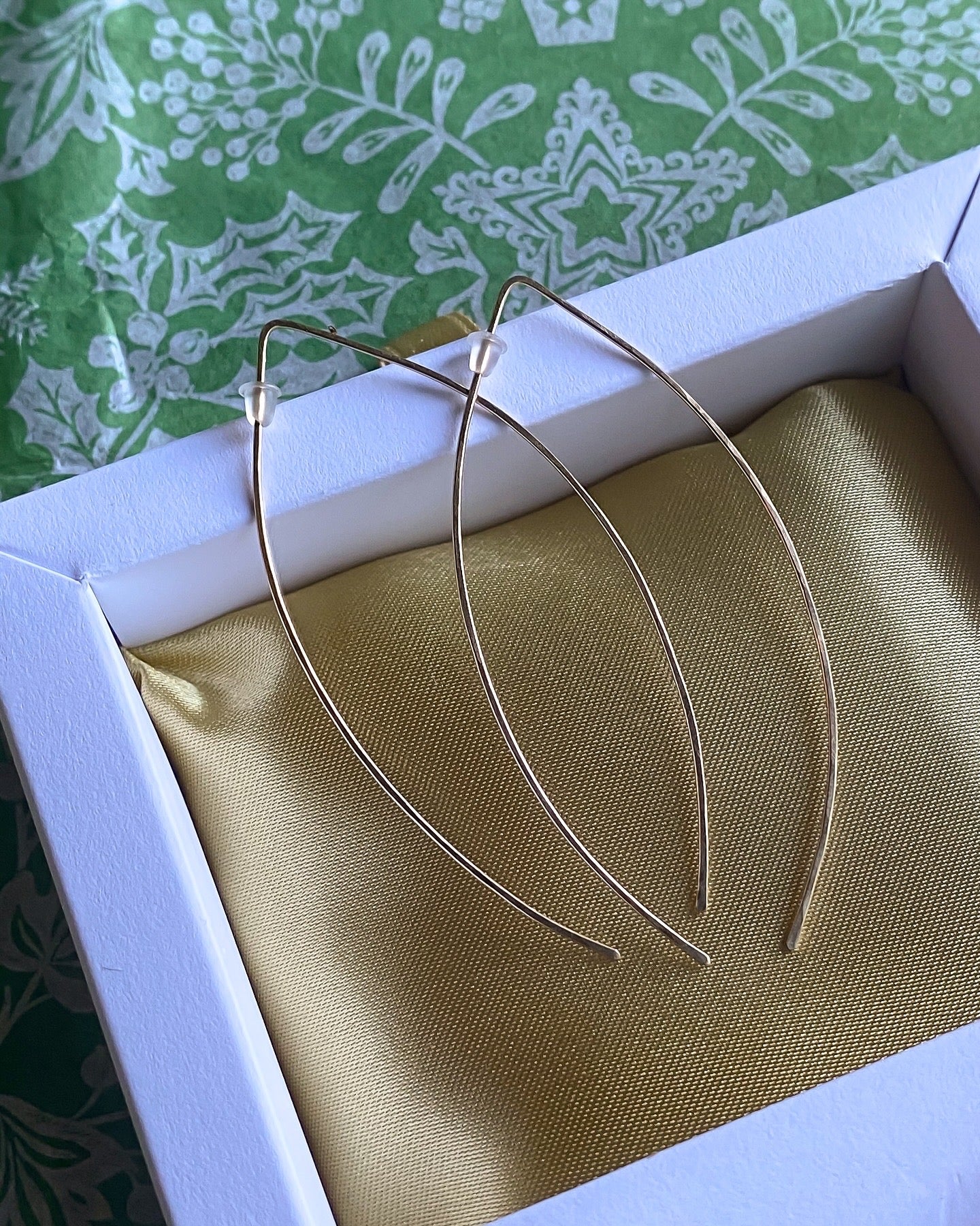 Hammered gold BIG wishbone hoops. So lightweight you forget you’re wearing them—until someone compliments how lovely they look on you.