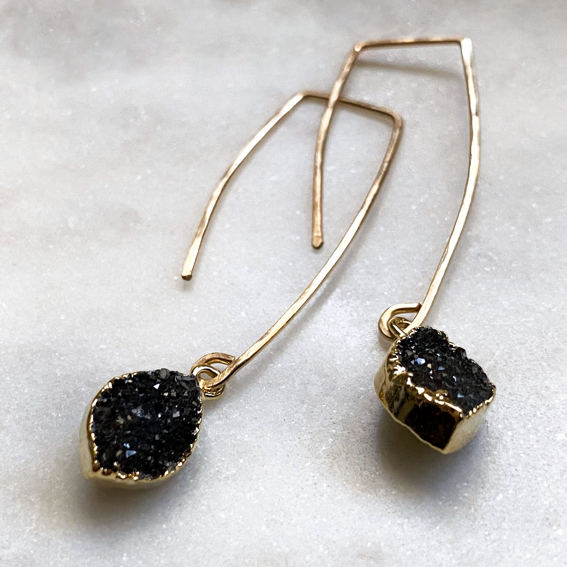 Gorgeous, glittering druzy! Add a beautiful touch to your daily threads with these little crystal quartz sparkles set in 24K gold.