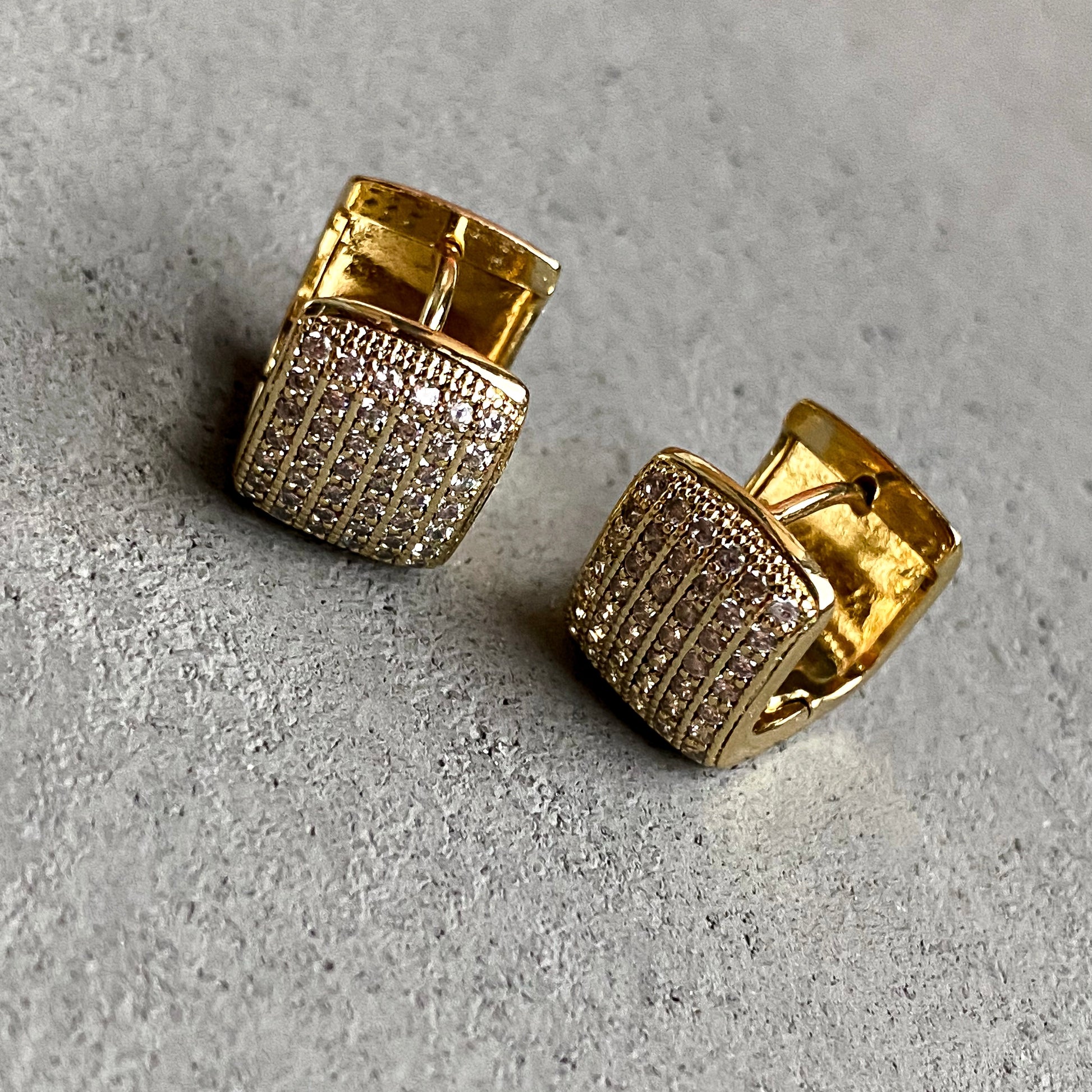 Our glittering cube huggies are the coolest! Handcrafted in 24-karat gold vermeil, we love this pair worn alone or stacked with other earrings from the collection.