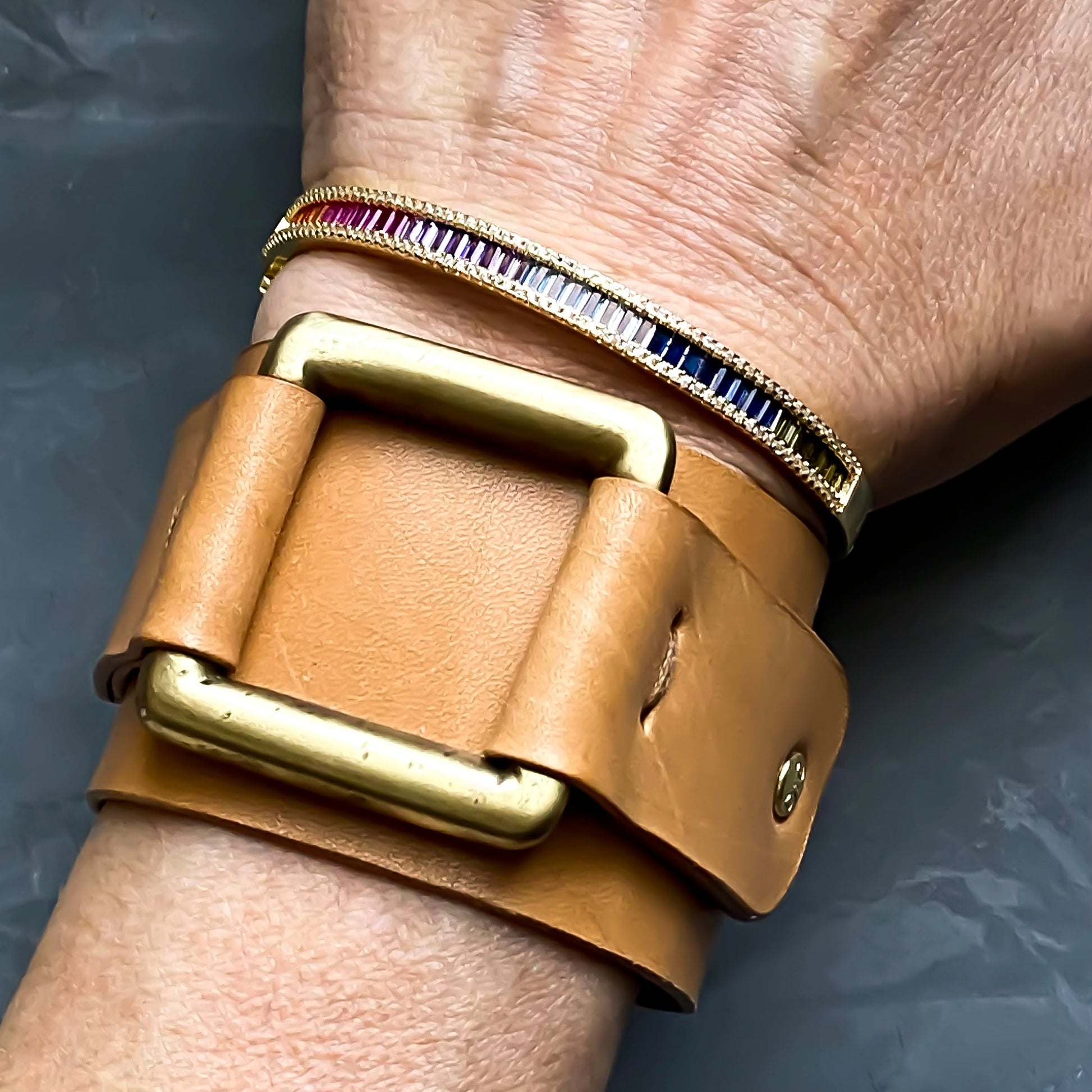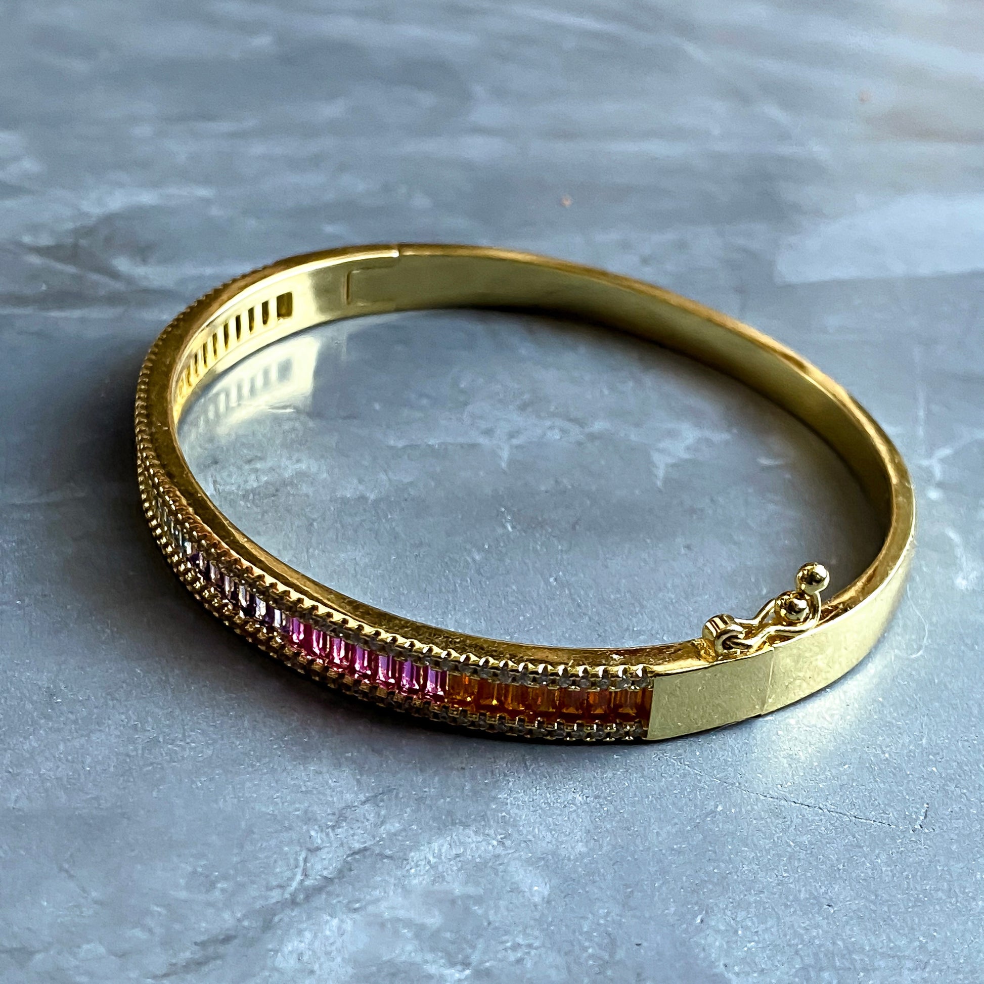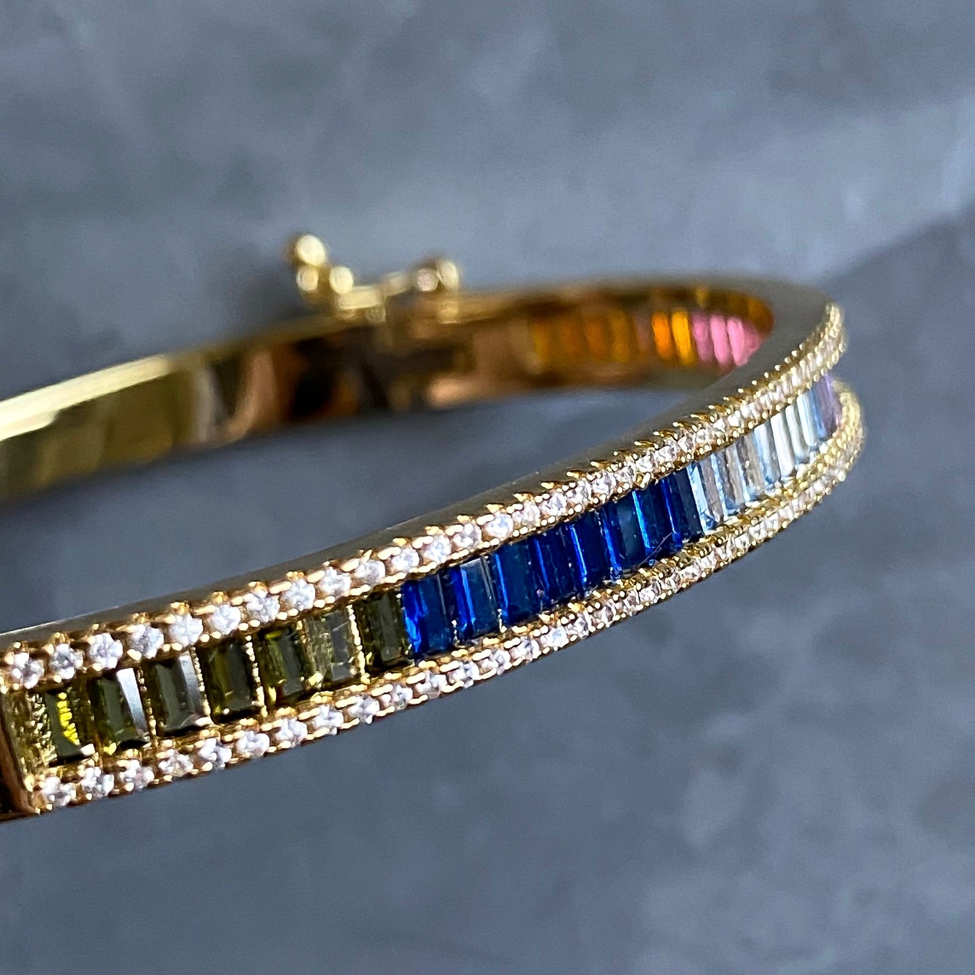 You’ll love how this simply elegant bangle shines so much brilliant light. Beautifully stacked with colorful ombré stones.