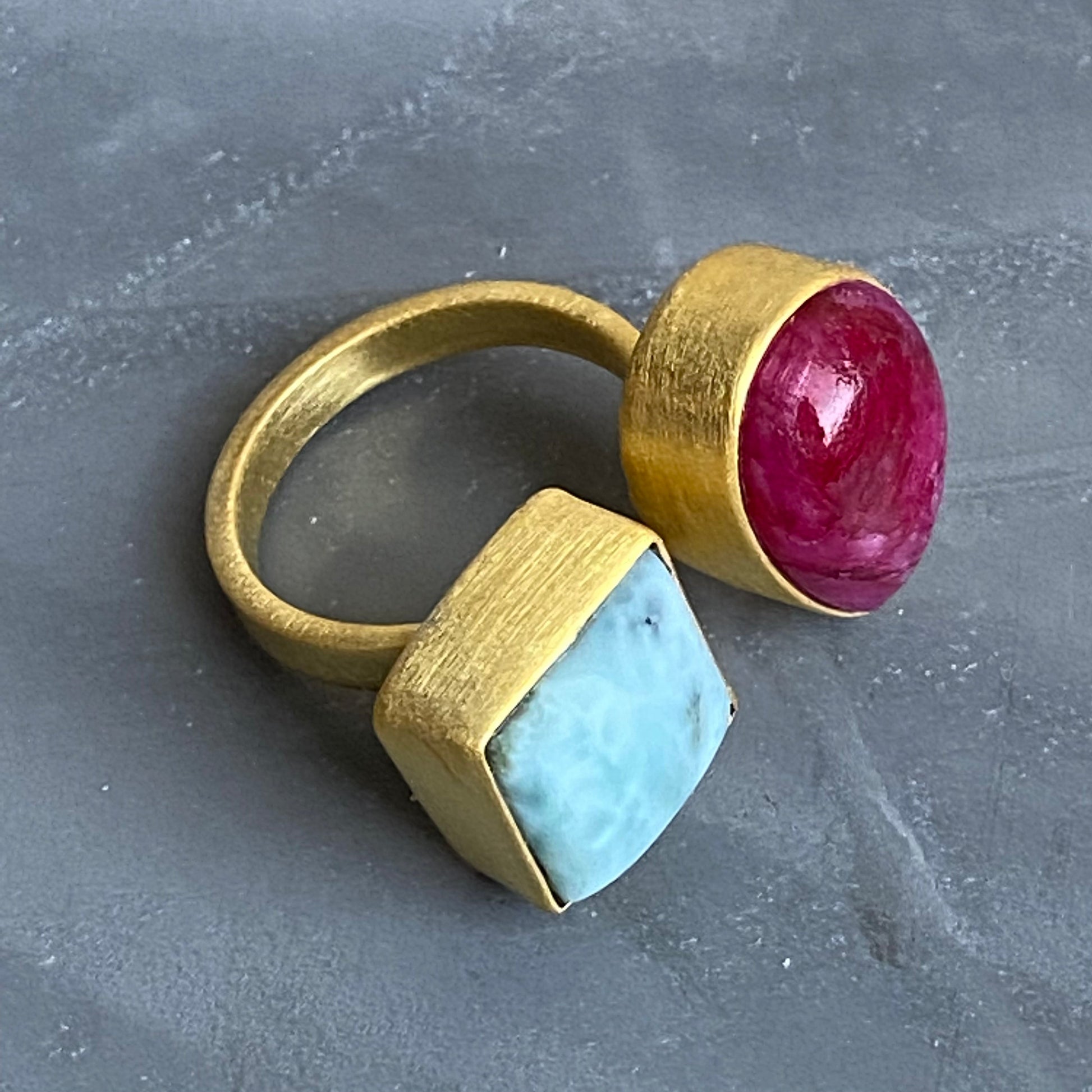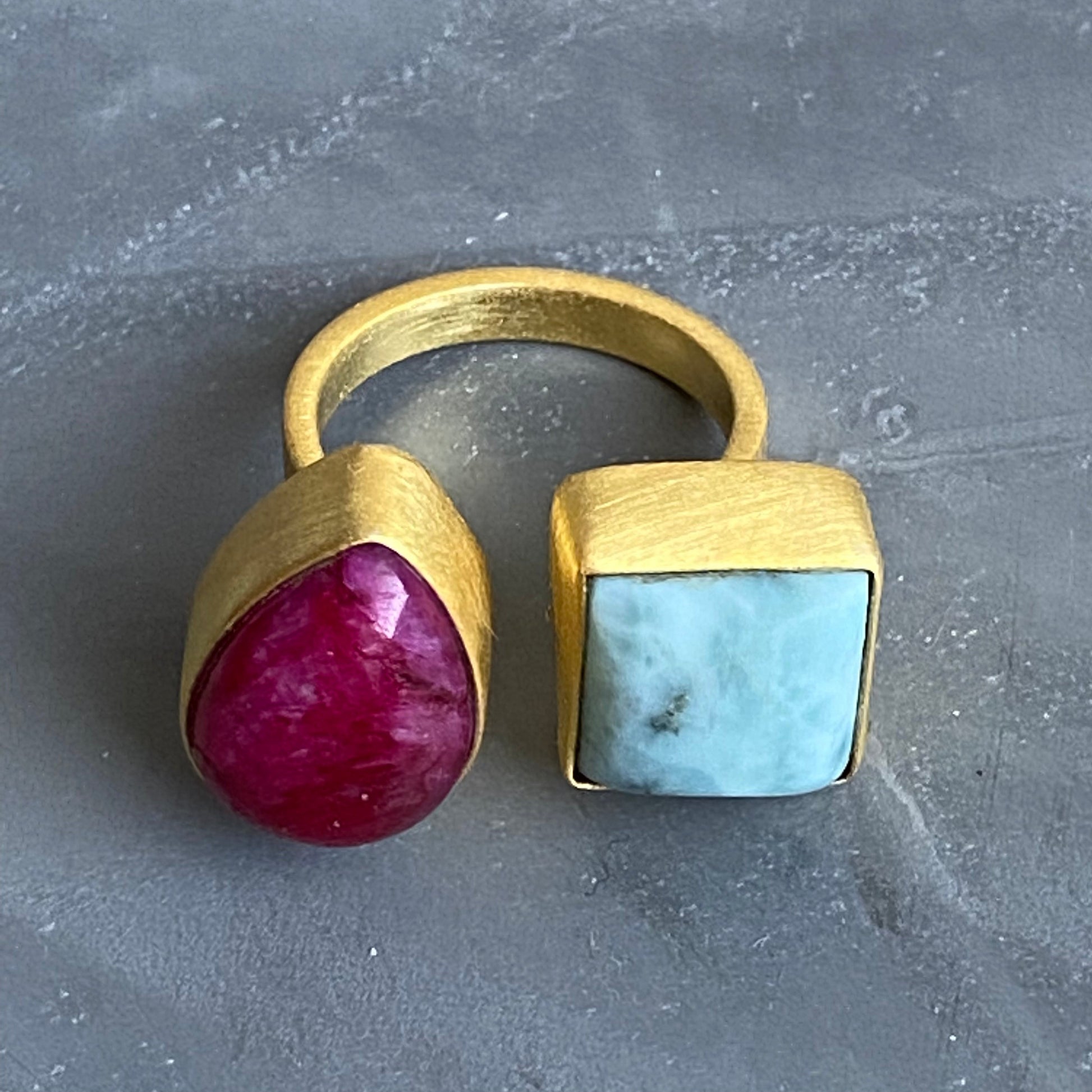 Our double stone rings are adjustable. Send us a note during checkout with your desired ring size so we can set the ring especially for you. If you’re unsure of your size, you can easily adjust the fit once you try it on.