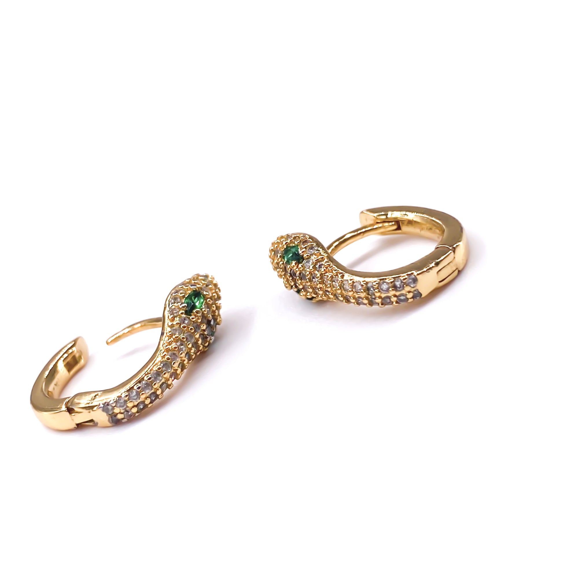 Handcrafted in 14k gold filled, our pave serpent huggie earrings are so chic and fun! Wear this pair as an everyday signature piece.