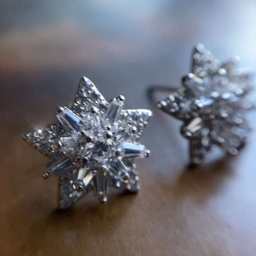 Introducing the Starry Night micro-pavé baguette diamond celestial earrings, designed to dazzle at every event this holiday season!