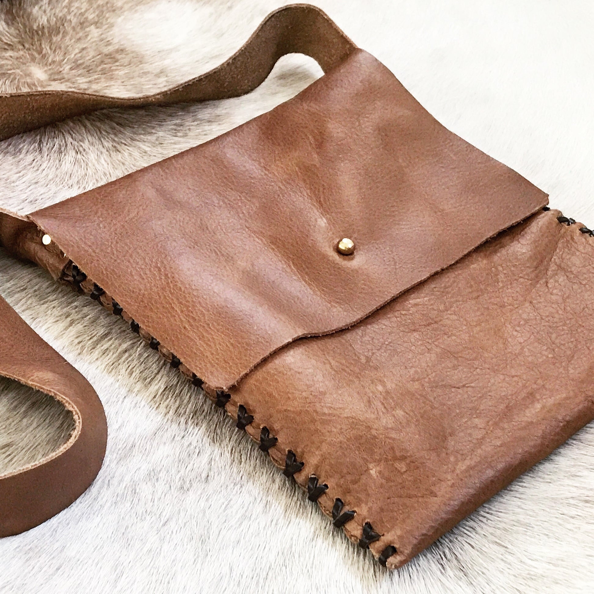 This warm toned, lightweight, slouchy leather bag is perfect for the daily essentials — 2 compartments that will hold your extra large phone, keys, glasses, wallet, lip balm. Top-grain whiskey toned leather will slightly distress + just get better + better over time. Wears so beautifully.